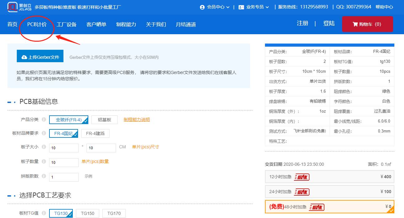 二、登錄系統(tǒng)后 點擊 “PCB計價” 開始選擇PCB工藝要求,