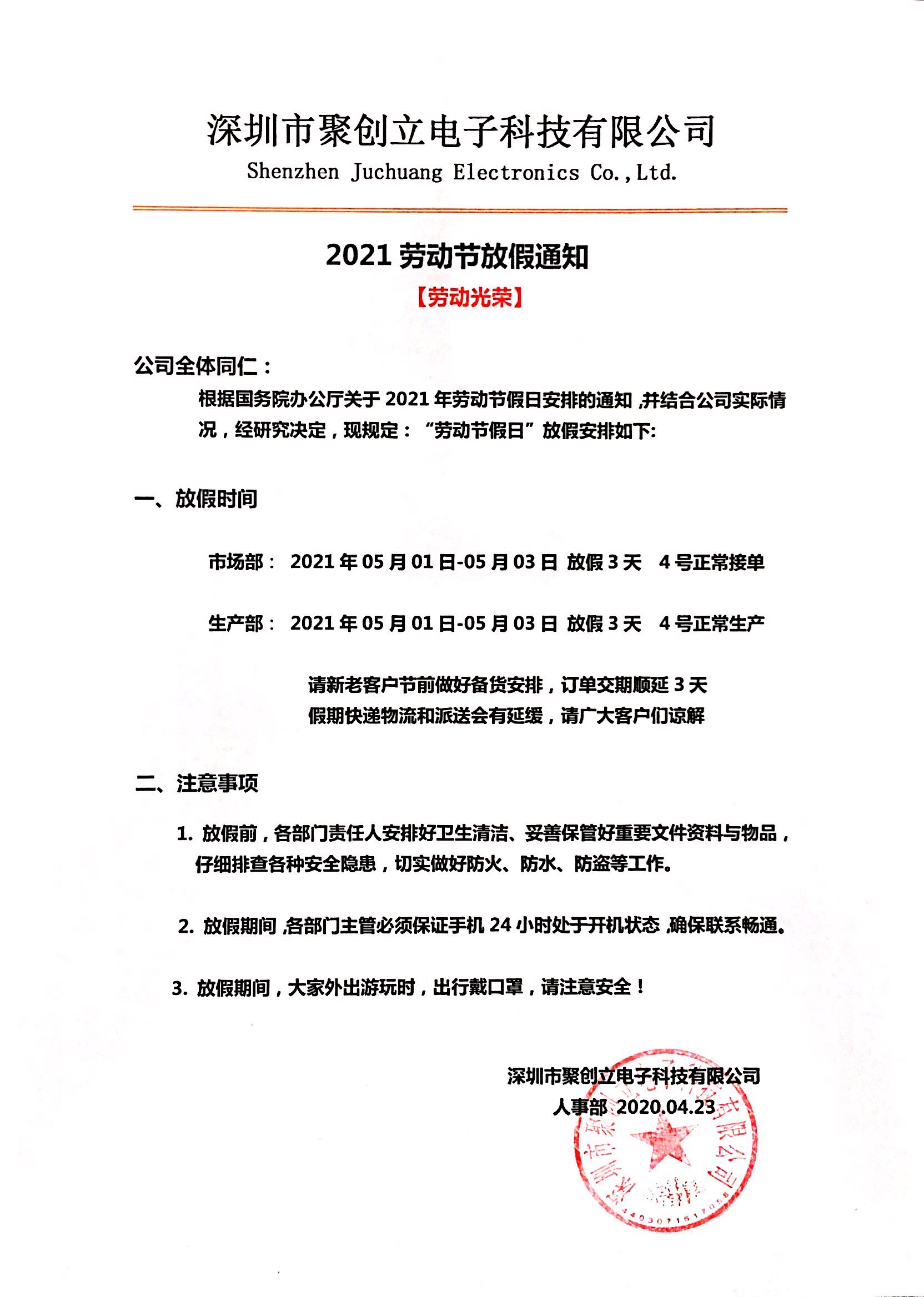生產(chǎn)部:2021年05月01日-05月03日 放假3天  4號(hào)正常生產(chǎn)
